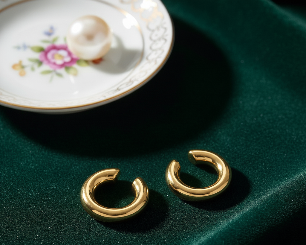 Discover the ultimate expression of minimalist luxury with The Nova piercing. This exceptional piece redefines sophistication with its perfectly rounded, architectural C-shape. Crafted from a high-quality blend of Stainless Steel, Zinc Alloy, and Copper for a radiant gold-tone finish, this ear clip offers the look of fine jewelry without the commitment of a piercing.